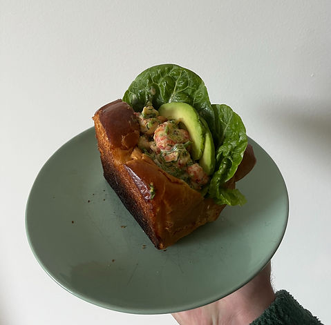 Vul eerst je brioche met een paar slabladeren voor die frisheid. Daarna komt de rivierkreeftensalade erin, gevolgd door de avocado. Maak het af met nog wat extra citroenrasp als je echt wilt uitpakken.